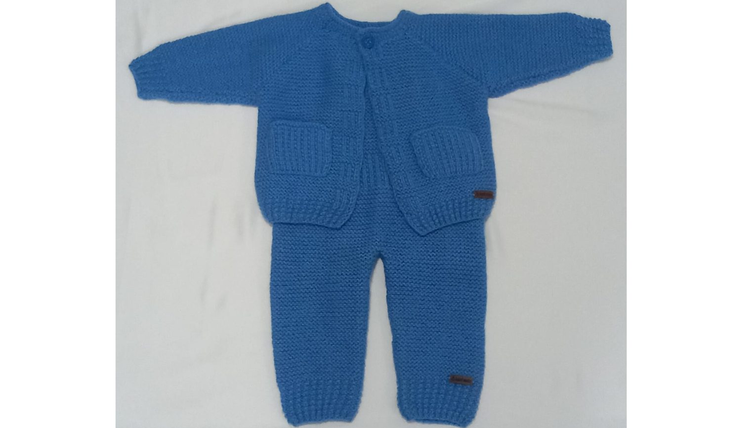 Caldo e comodo, questo set in 100% acrilico include giacca con tasche e pantaloni abbinati, perfetto per mantenere i bambini dai 9 ai 12 mesi al caldo.