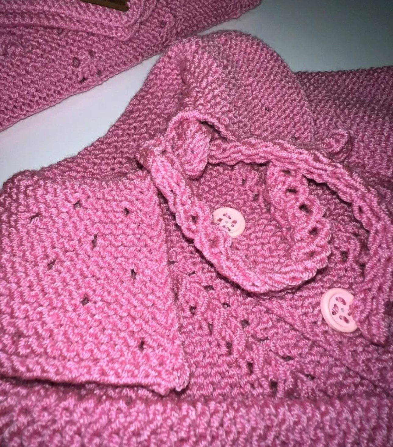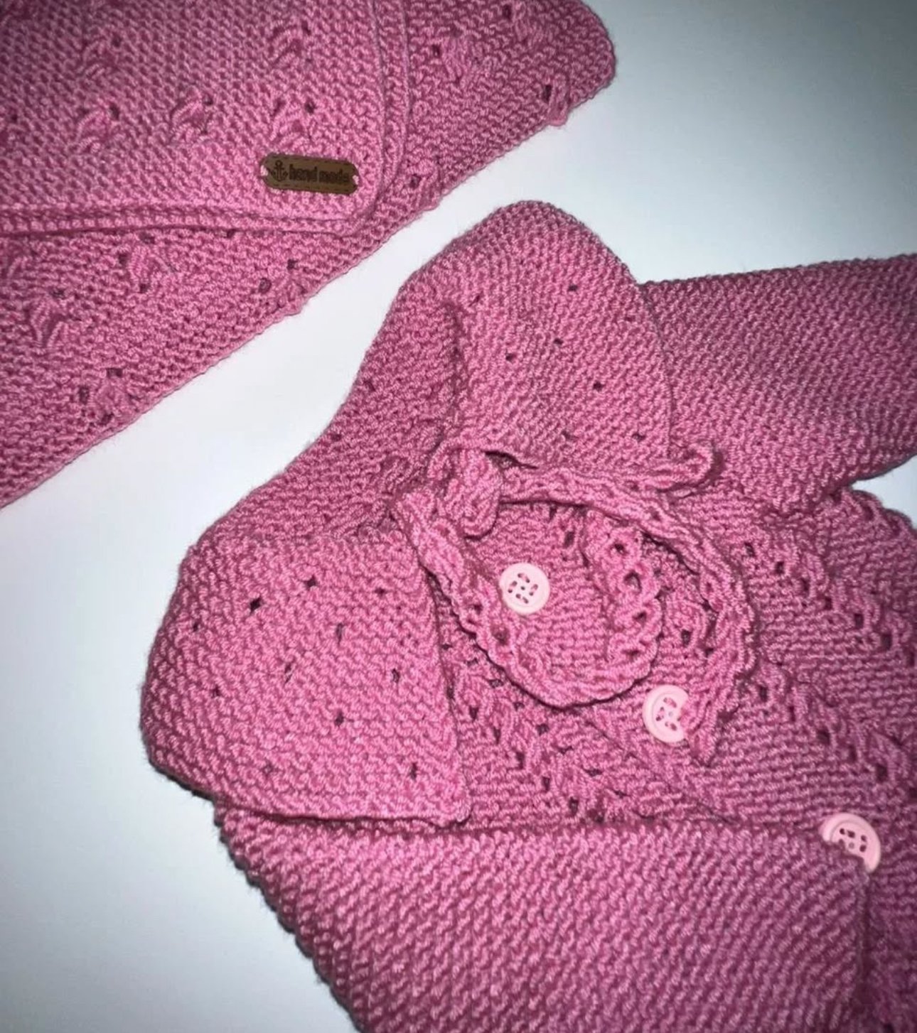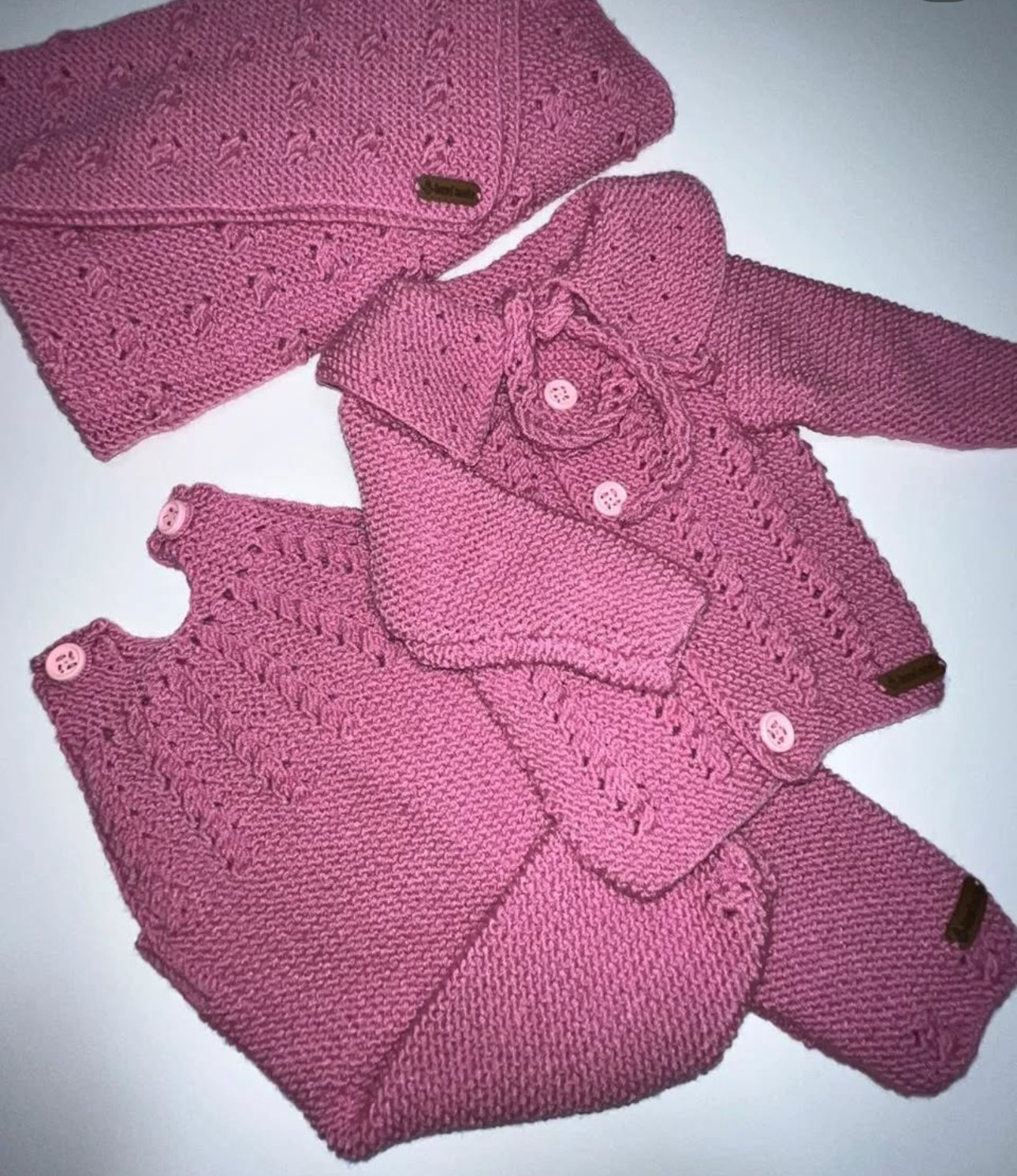 Completo rosa per bambina con pagliaccetta gambe lunghe copertina e maglioncino tutti 100% acrilico .