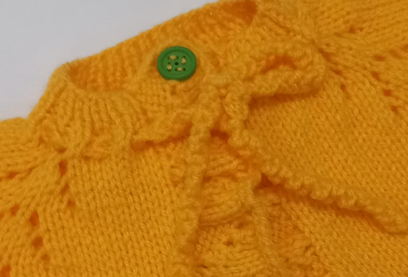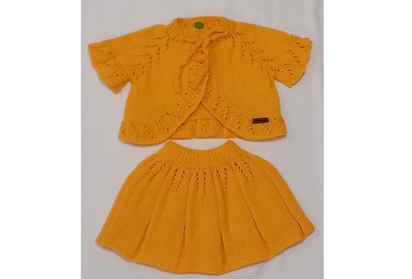 Morbido e femminile, con maglietta a maniche corte e gonna con balze. Il giallo brillante e i dettagli eleganti lo rendono perfetto per ogni occasione.
