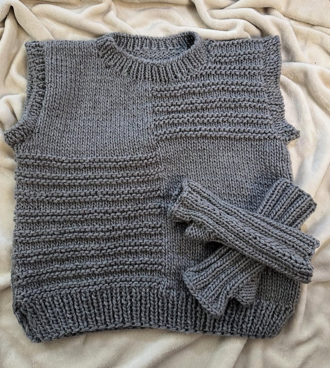 Gilet per bambini di colore grigio, con un design fantastico e due guanti. Materiale 100% acrilico, morbido e confortevole.