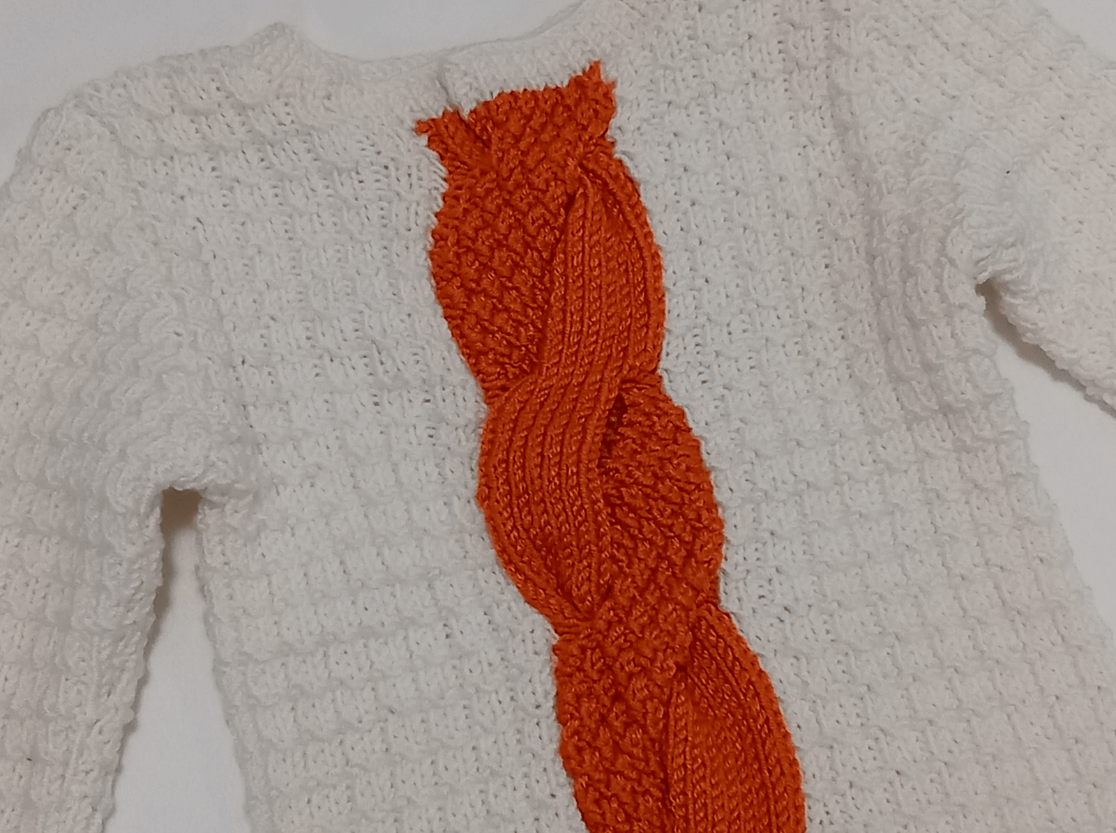 Maglione ricco di dettagli per piccole principesse . Realizzato in  30% acrilico  70%  cotone .