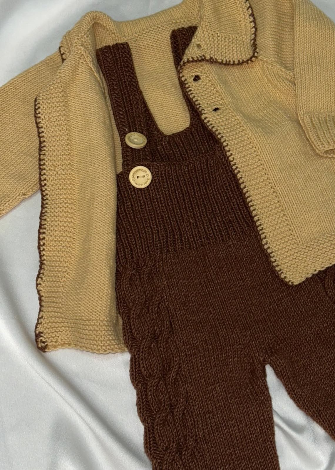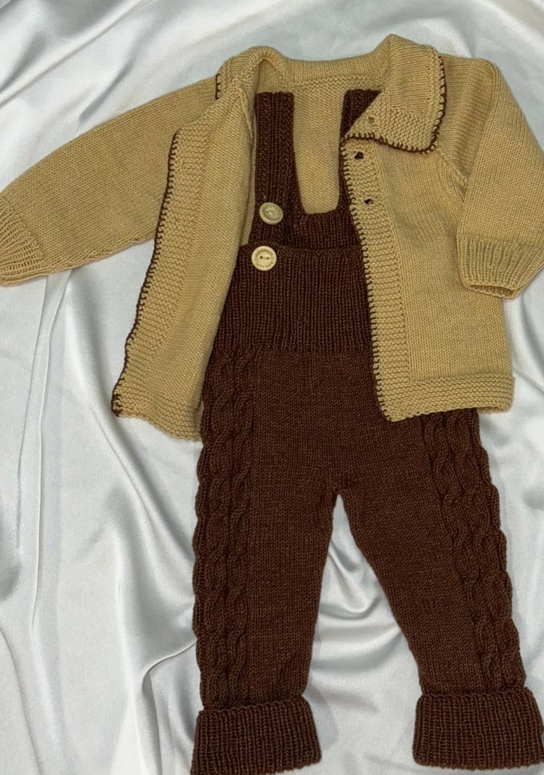 Pagliaccetto per neonato in maglia , realizzato in materiale morbido e confortevole 60% cotone 40% acrilico , ideale per garantire calore e delicatezza sulla pelle del bambino . Il set comprende pagliaccetto e giacchina con bottoni, adatto all’uso quotidiano e alle occasioni speciali .