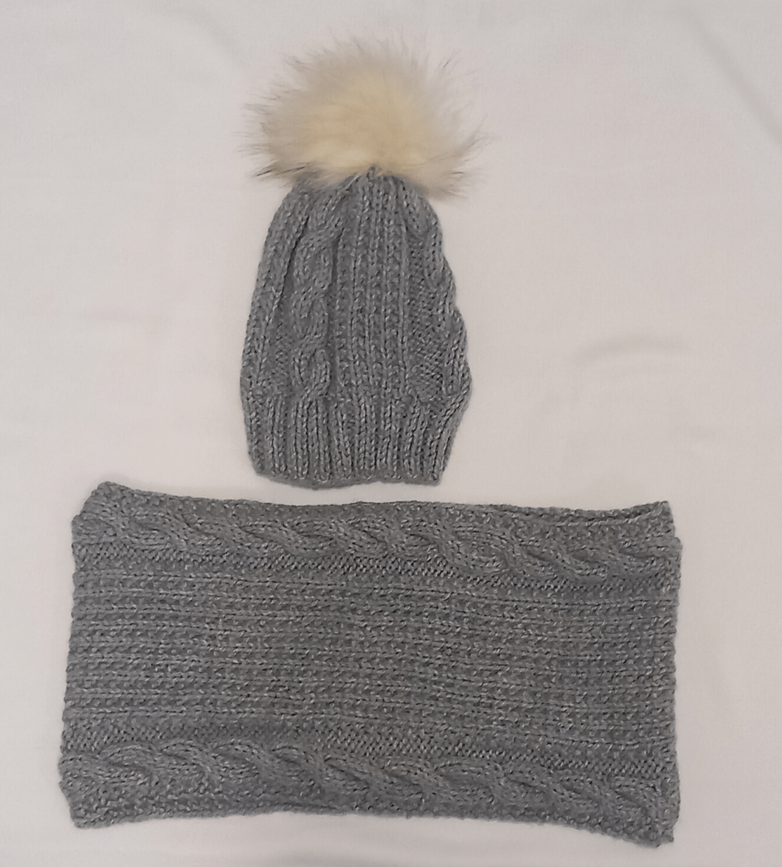 Set composto da sciarpa e cappuccio , realizzato con materiale di qualita composto da 25% cotone 75% acrilico . Garantisce calore e comfort , unendo funzionalita e stile per un aspetto dolce e adatto ai bambini .